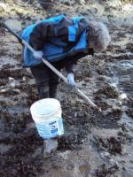 So, off we went yesterday down to the little lagoon right behind our house.  It is a steep climb down about 75 feet at a 40 degree angle and we use strung ropes to help us get up and down.  The lagoon dries when the tide is about half way out but, at this time of the year, half way is about as far as it goes.  Our window for harvesting started at 3:00 and ended at 4:30.