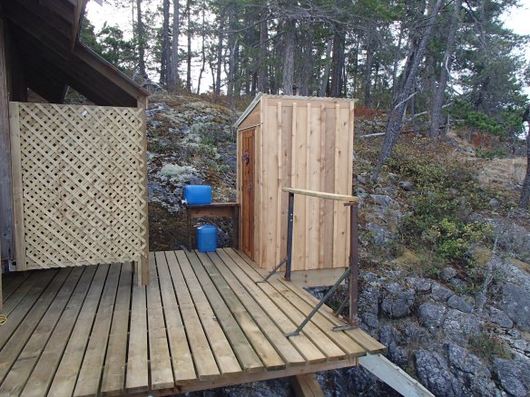 This little project interfered with our boat reconstruction and so we have a boat torn apart waiting patiently for our efforts to resume the extensive surgery while we pottered about on an outdoor bathroom instead. Because every visitor (but for the two groups of guest-come-latelys in September) has had to do without the deluxe bathroom, I may just throw in the towel on that project and get on down to the boat. That is getting to be more pressing.
