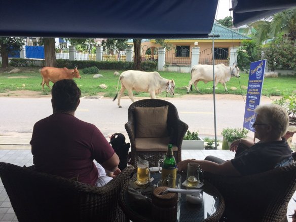 Maybe they are managing their portfolios.  Offshore accounts?  I don’t know.  But they emerge at night like giant white cows-in-t-shirts, hang out at a local restaurant and disappear again until the next night. Occasionally, we will see one down at the supermarket. They are mostly distant, incommunicado, unengaged with ‘other whites’ and certainly NOT with Thais.  This is not a friendly outgoing group as a rule.  But they are NOT unfriendly, either.  Just distant.  Could be me…..