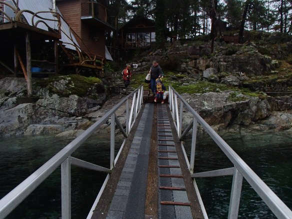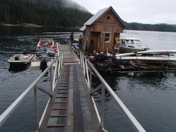 Guests tie up at our neighbour’s dock. The one we use all the time, too. It’s a typical non-permanent float tied to shore with heavy lines so as to remain relatively in one place and there is a ramp that slides up and down with the tide and as the currents dictate. The ramp is fixed at one end, the other end is free to move with the main float. It has served the owner well for over 25 years and it has also carried our added burden for the last 15. It’s a great dock.
