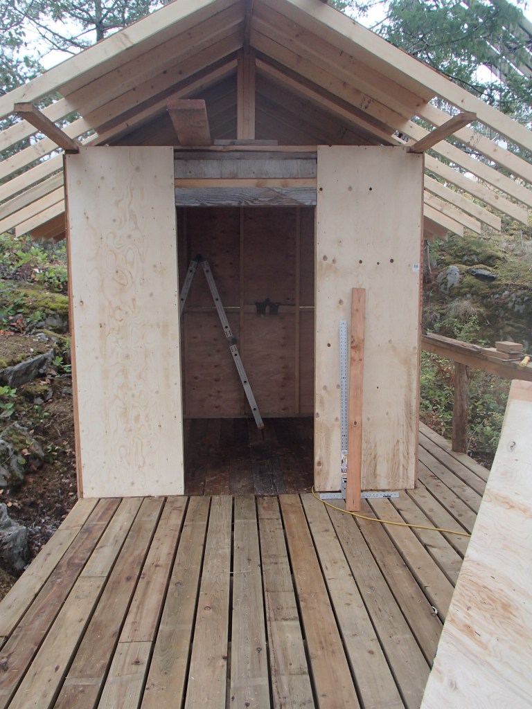 Anyway, one of those stumbles prompted me to declare the need for another building in which to store some of the larger items currently stored in the workshop. Of course, it had to look like it was part of our other buildings, the construction ‘family’, and so board and batten was going to be the style. It would be small (8 x 8) because it was just for storage (hard to fix stupid) and it should not take too much time. That declaration was four months ago. We still ain’t done. But we are so close, it is ‘close enough’ to warrant a blog.