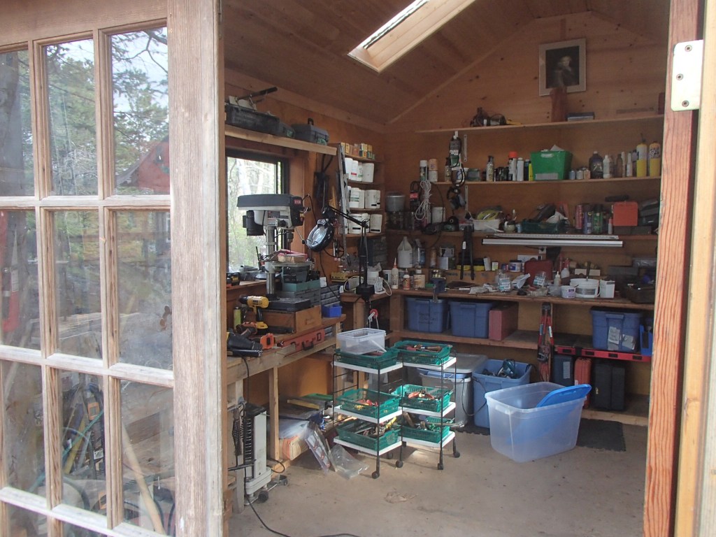 About four months ago, I was stumbling around my workshop and wondering why everything was so messy and I could hardly move. (Part of the reason is that Sal is a bit of a neat freak and anything she deems unsightly gets put in my workshop). That is nowhere near the entire truth or reason, however. The bulk of my excuse lies in my tendency to work until I am tired and then, when I go to clean up, I am too tired to do it right and things are just piled up on the bench….and then I have to pile some of it on random shelves or open spaces and then….maybe the floor and…then…well, I begin stumbling…..