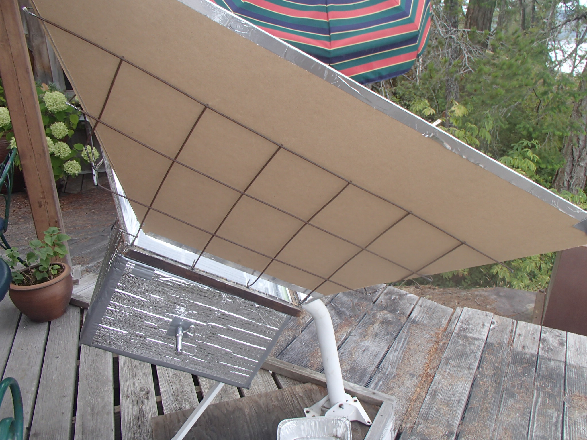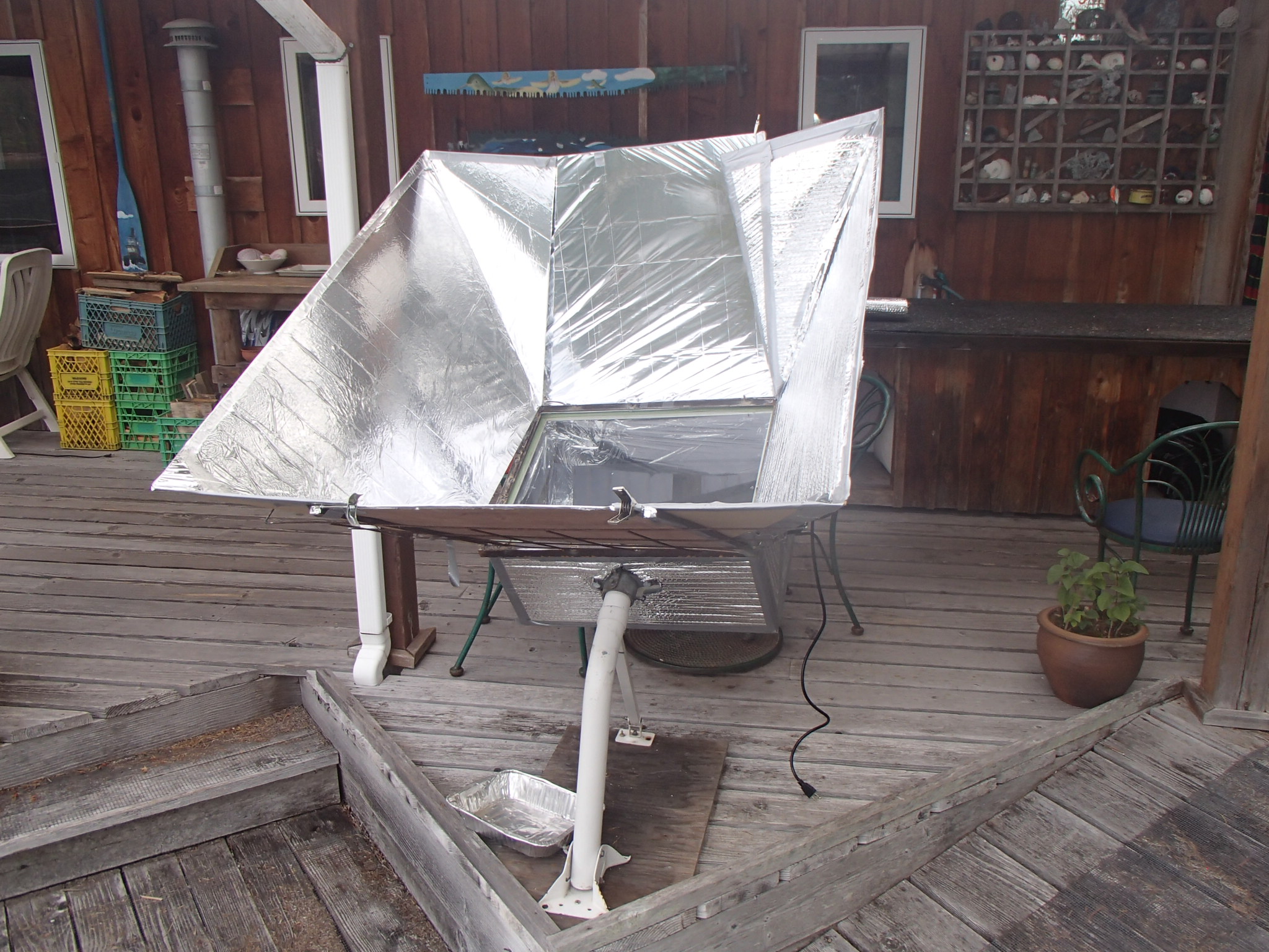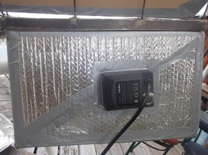 I do not yet have a picture of a roasted rotisserie chicken to post but I ‘allege’ that the Fresnel lenses kicked up the output to 325/160 degrees F/C. That is only 50 degrees better than before but it should be enough to prove the ‘oven’ claim when we decide to cook in it. I have a pic of the temperature gauge at 325 but the real proof will be in the taste and appearance of the chicken……within a few days, I hope.